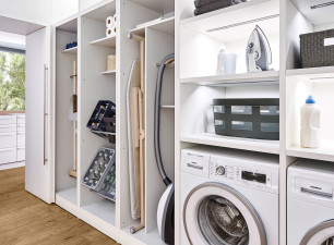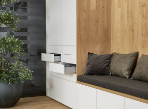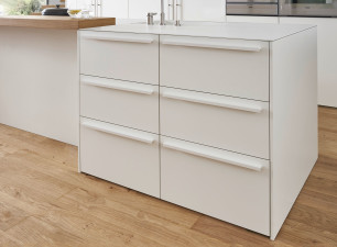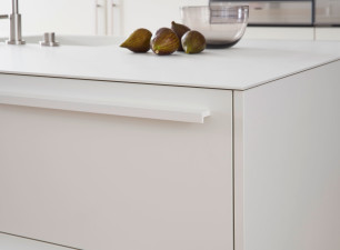 Avec des matériaux inhabituels, STEEL crée un effet de surface unique : au cours du processus de fabrication, de la poudre d’acier colorée est mélangée à une émulsion spéciale, rouillée à l’acide, poncée et revêtue d’un vernis mat. Le résultat est une structure marquée qui prend l’aspect du métal terne – et qui séduit ici sous forme de façade de cuisine haut de gamme au charme industriel. Jusqu’à présent, elle n’était disponible que dans la couleur claire « Corten » qui rappelle le cuivre, mais la nuance plus sombre « Ferro » vient maintenant élargir la gamme.