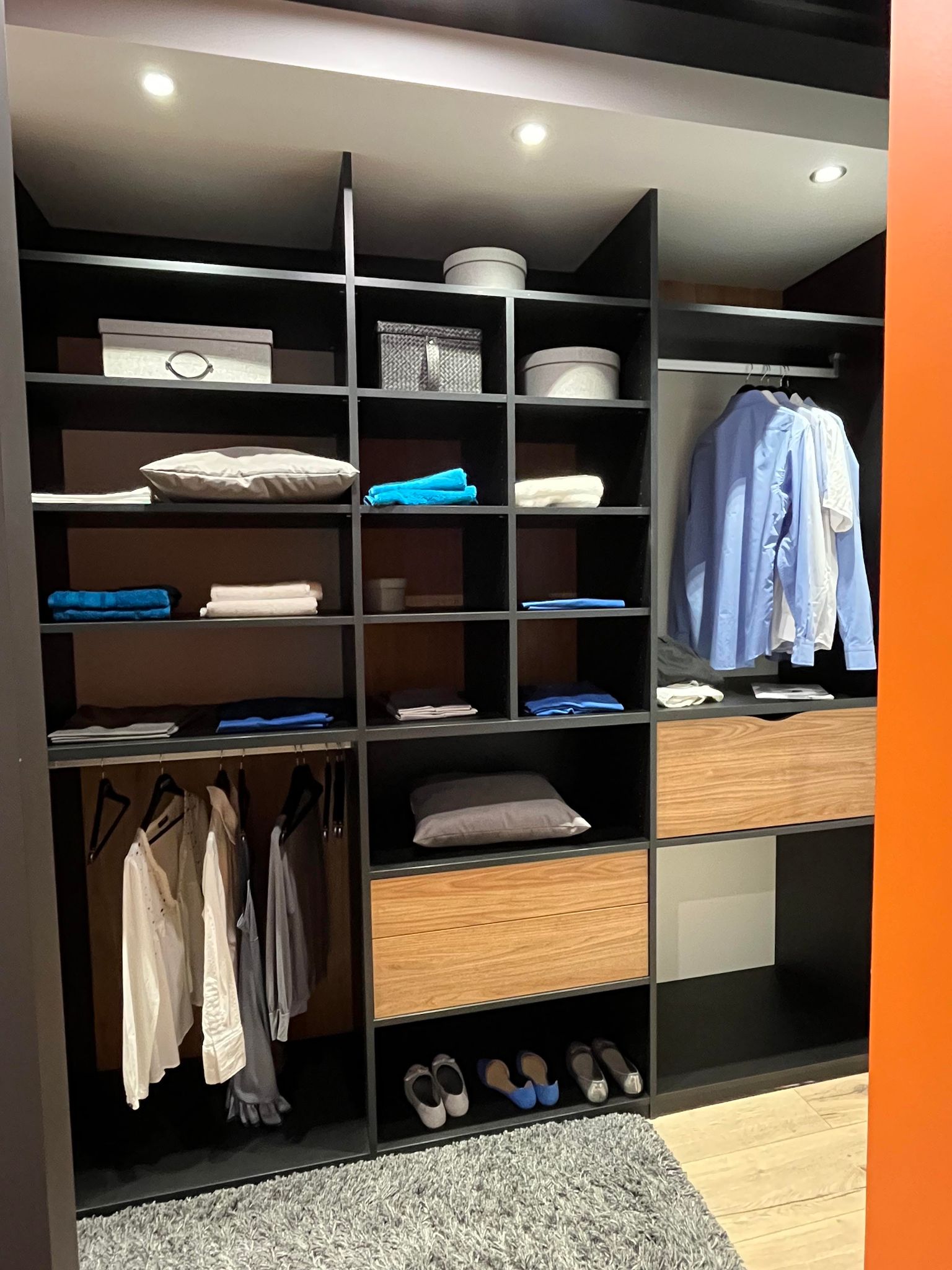 Un dressing ou placard sur mesure est conçu pour utiliser chaque centimètre carré de manière optimale, offrant des solutions de rangement adaptées à vos besoins spécifiques.